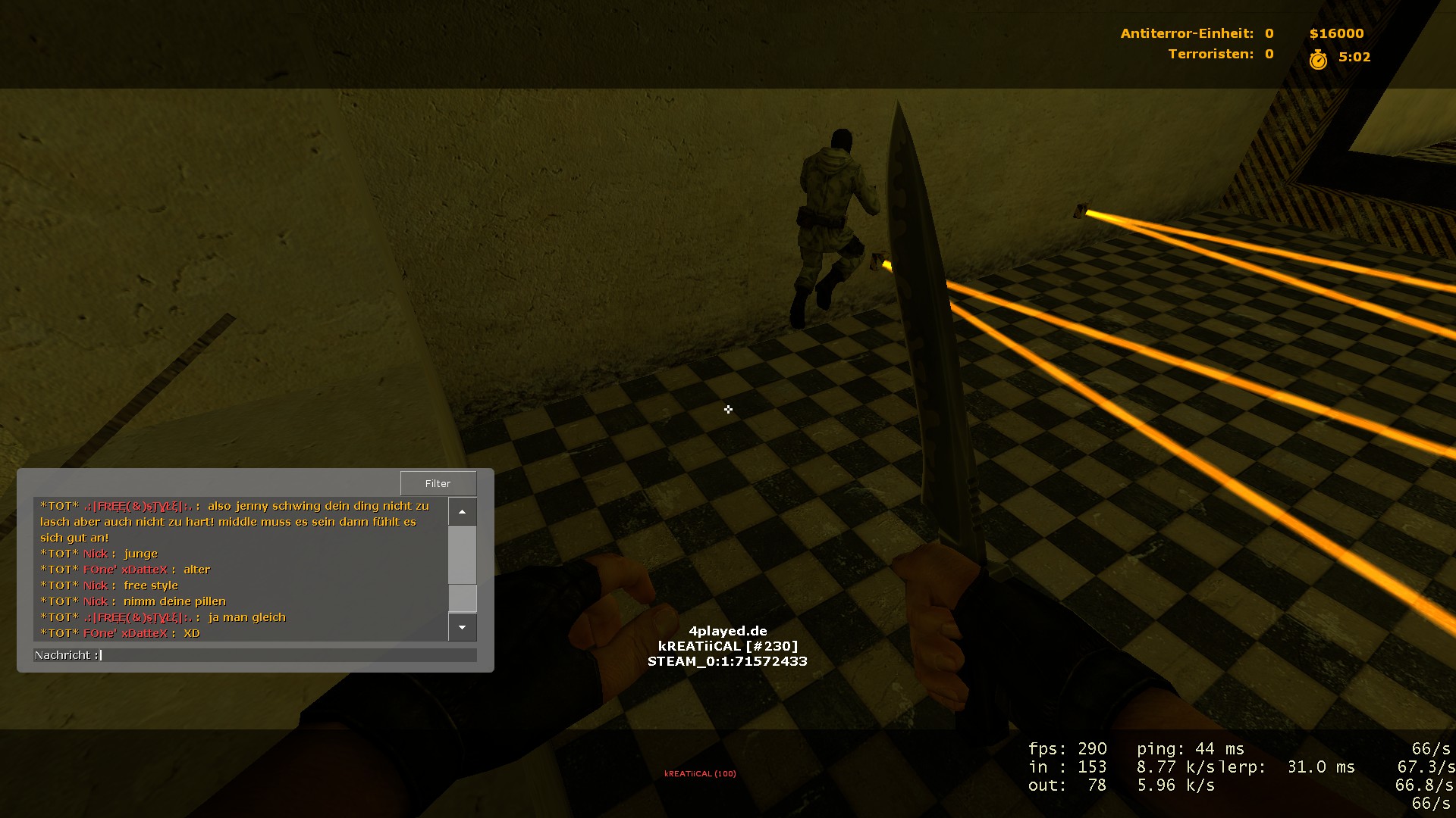 na dann wunder dich nicht warum die admins deine reports kaum ernst nehmen ... und seltsam das dich immer so viele scheinbar grundlos beleidigen. .naja der sache gehe ich auf der spur..bist unter beobachtung jenny.. also halt die etwas zurück mit provokation auf dem dea server